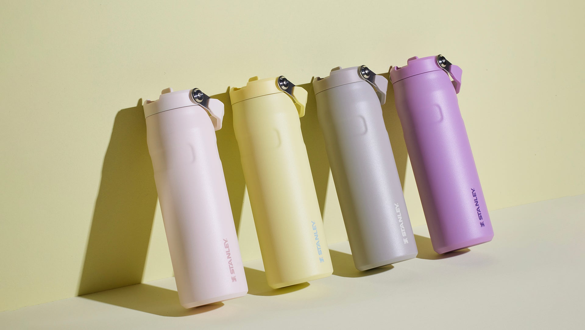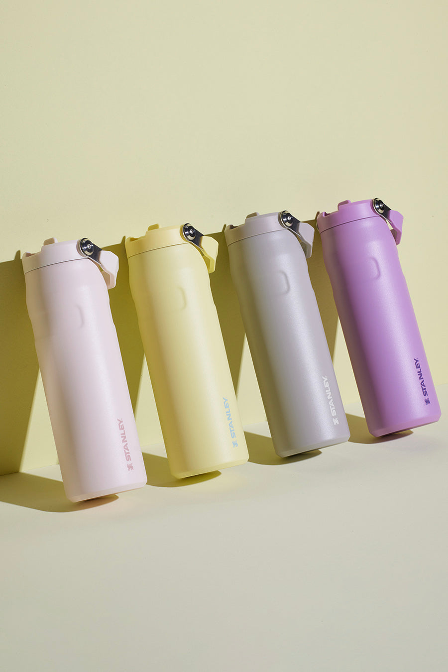 • Copo térmico Stanley verde-pistache com canudo.