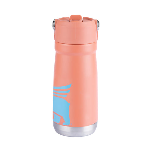 A Flip Straw Kids é térmica, possui alça para transporte, trava anti-vazamento em sua tampa, canudo de bico rígido retrátil, além do design ergonômico perfeito para mãos pequenas.